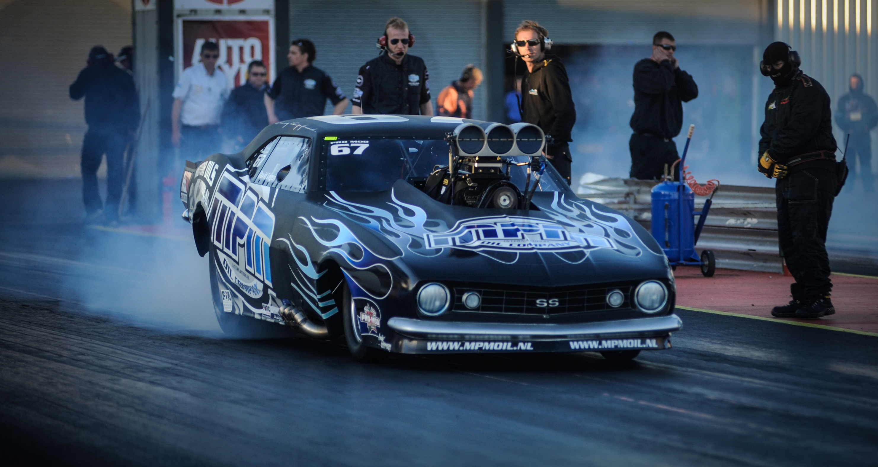 Santa Pod (England), May 29 2014 - To say MPM-driver David Vegter had an exciting opening round of the FIA European Drag Racing Championship, would be a typical English understatement. In his first qualifying attempt the chutes didn’t deploy and at a speed of 240 km/h the ’67 Camaro made a 180 degree spin and came to a halt against the wall. But only a few hours later Vegter was back at the starting line for the second run and went straight into the number seven qualifying position! “Of course this was not the way we wanted to start the season. But the crew did a fantastic job to fix the car in time for the second run. It’s a pity eliminations rained out, I know our car is much faster now and major upsets would have been possible”, said a very calm Vegter.