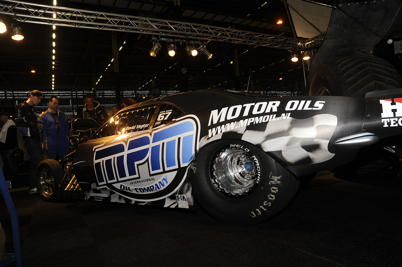 Highlight of the show was the moment the engine in the '67 Camaro was fired up. The 3.000 bhp made so much noise, all visitors in the event centre came to see the MPM Camaro. The methanol from the exhausts made the show even better. Many people wanted to have the MPM made 'hero cards' and gifts. Vegter Pro Mod Racing and their sponsors Post & Dros, MPM and HKR Techniek can look back at a very successful weekend in Gorinchem.